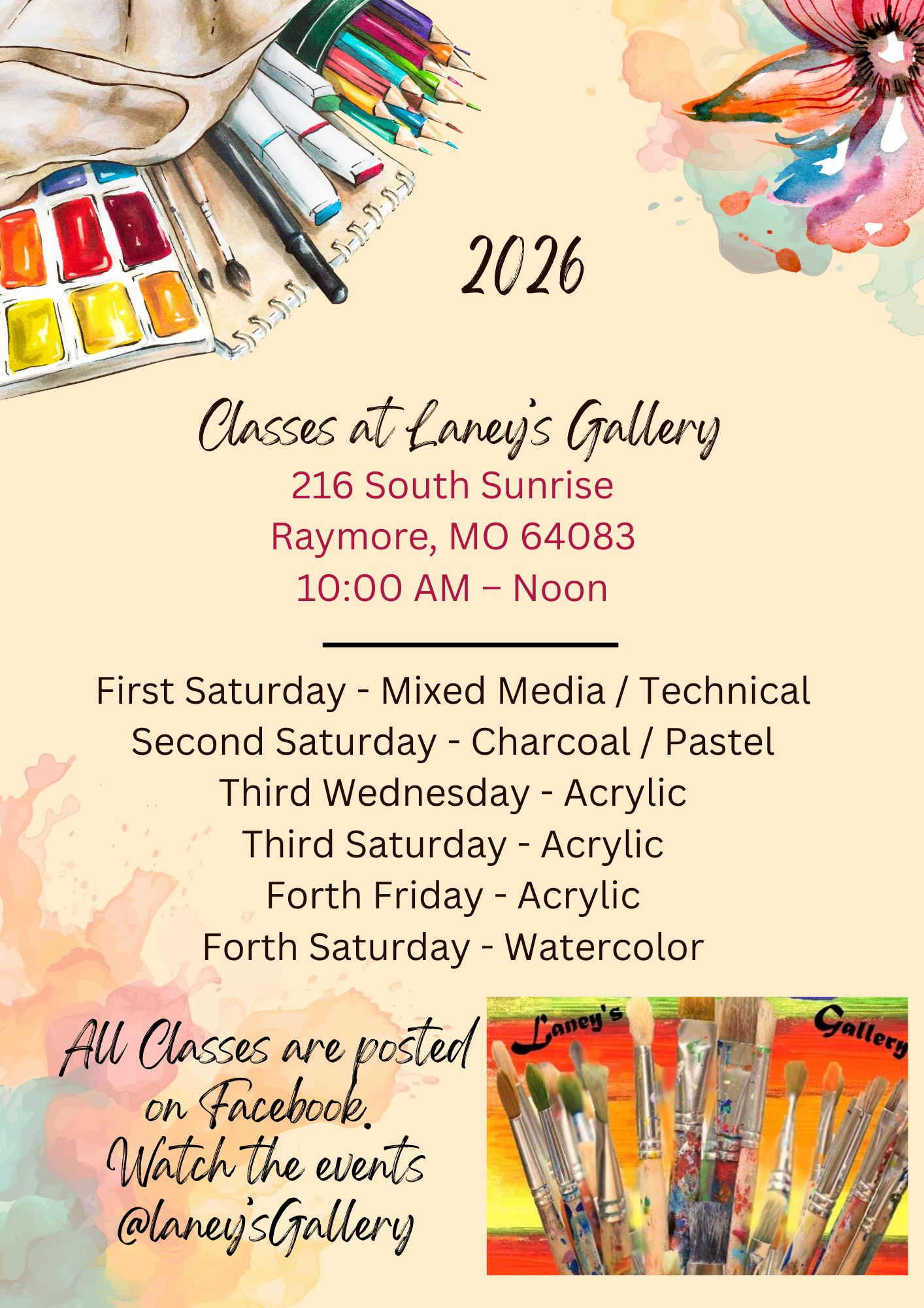 2026 Classes at Laney’s Gallery Image | December 29, 2025 | Elayne (Laney) Allison Rate this:Share this: Click to share on X (Opens in new window) X Click to share on Facebook (Opens in new window) Facebook Like Loading... Related
